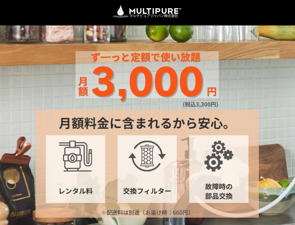 【PR】マルチピュア 世界80か国以上で愛用されている浄水器の紹介です。高い浄水性能で水道水を天然水に近い品質にする家庭用の浄水器です。化学物質が除去されたお水をたっぷり使えるうえに、定期的なカートリッジ交換代金も含まれているので、余計なコストもかかりません。毎日60L以上使えるので、お米を研ぐ水、野菜を洗う水、茹で水にもスープにも使い放題。おいしいお水を、たっぷり使えるので、毎日の暮らしがもっと快適に過ごせます。【おすすめポイント】・月額3,300円(税込)・選べる2サイズ・最短4日でお届け【こんな方におススメ】・ウォーターサーバーからの乗り換えを検討している方・建物が古く、水道の水をそのまま飲みたくない方 詳細はこちらをクリック おすすめ商品 MP400SC MP880SC MP400SC 3,300円(税込)/月 外形寸法 105.0mm×189.0mm(本体のみ)1日の使用目安は23リットルとご家庭での利用におススメ。コンパクトサイズのため、限られたキッチンスペースでも設置しやすいモデルです。 MP880SC 3,300円(税込)/月 外形寸法:125.0mm×304.0mm(本体のみ)1日の使用目安は65リットルと大容量タイプなので店舗などにもおすすめです。また、ヒ素の除去が可能なため、井戸水や地下水の環境に適しています。 おすすめ情報 ※当ページはリンク先から情報を引用しています